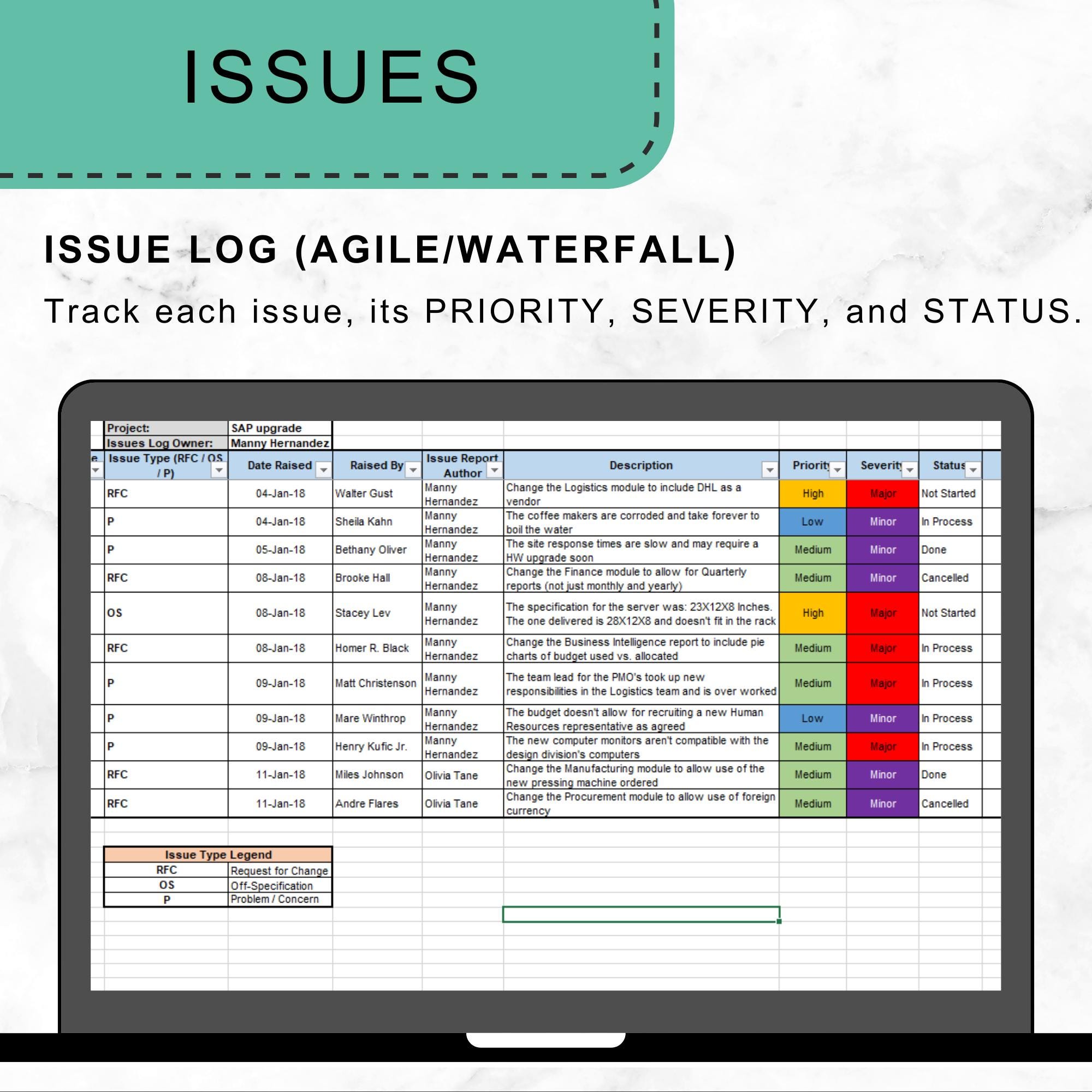Issue Log (Agile/Waterfall)