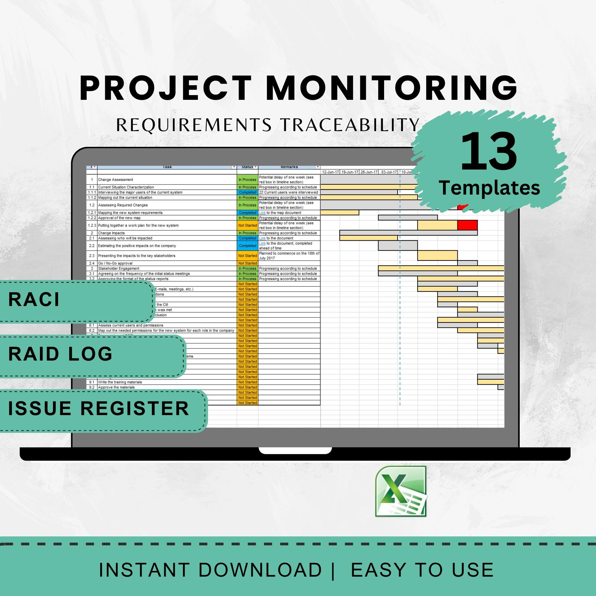 13 versatile Excel templates covering essential project management aspects.
