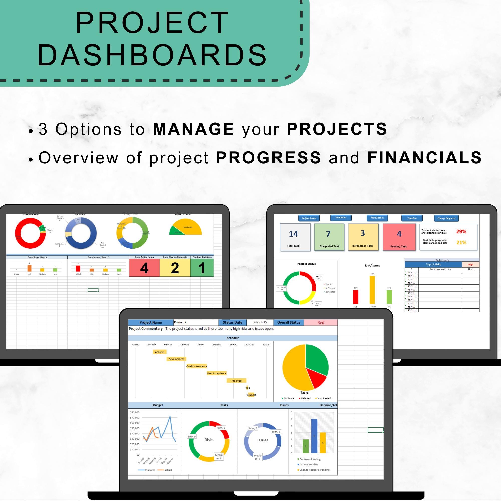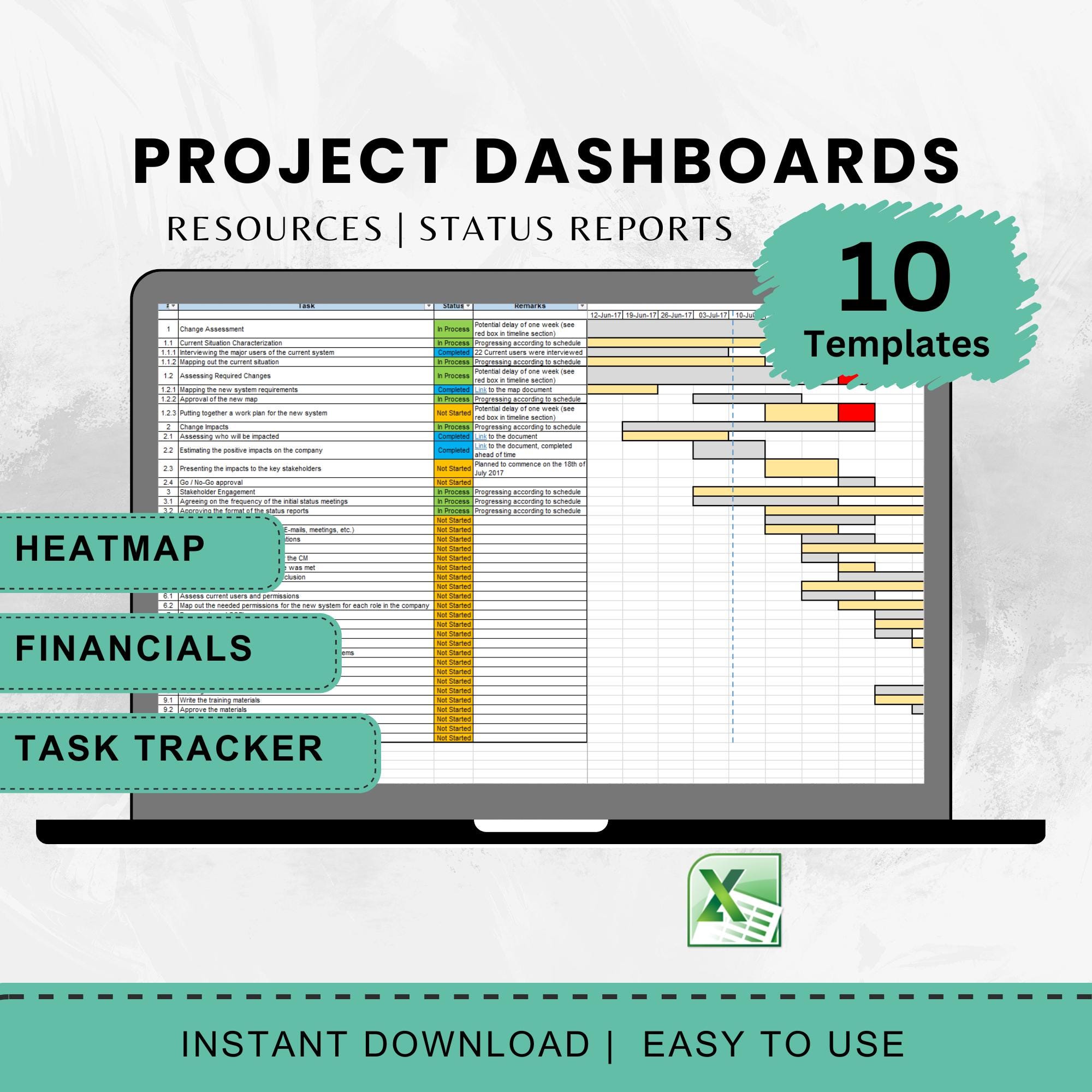 Project Management Template Digital Download Business Planning Tool Task Manager System PM Gift Productivity Template Excel Project Status Dashboard Work Management Spreadsheet Professional Project Template
