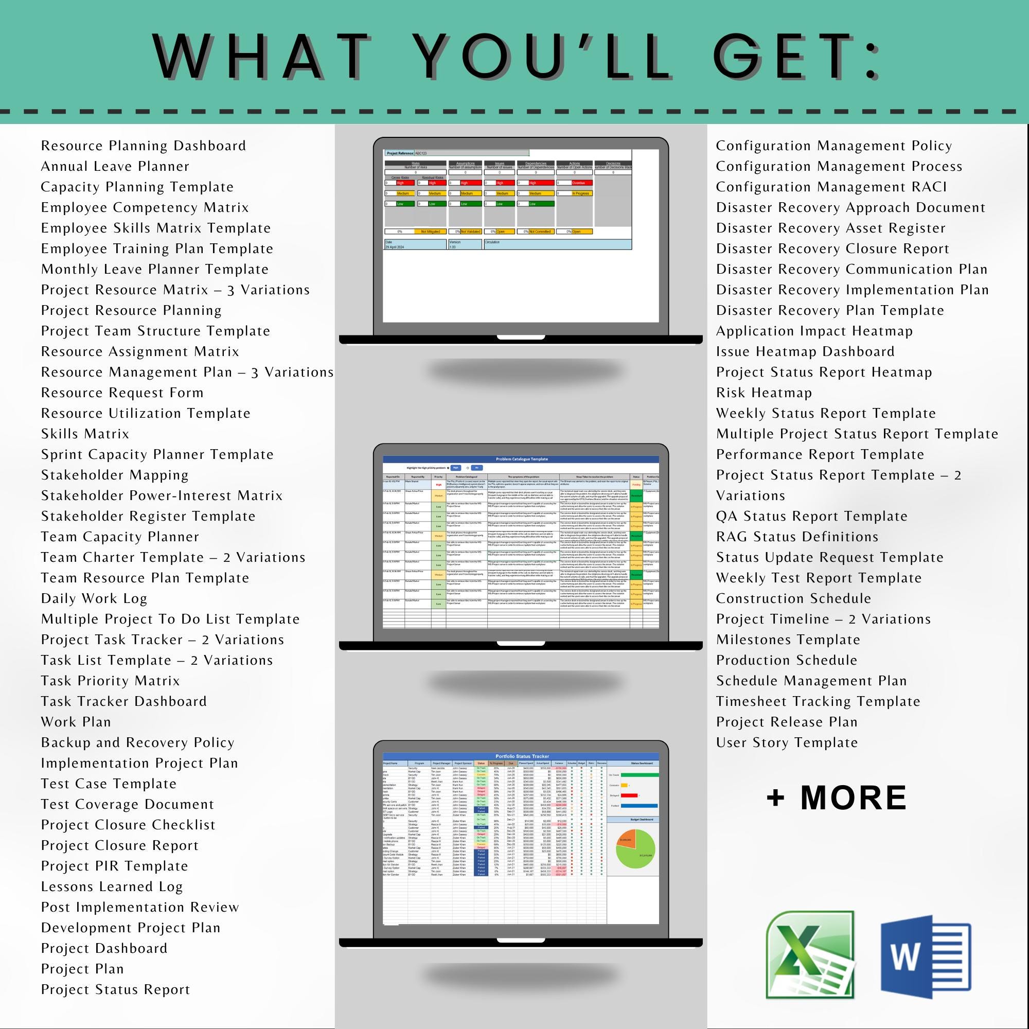 You are about to discover the newly curated 200+ Project Management Template Bundle. Your new excel and word templates that will save you time, provide confidence, and lead you to successful projects.