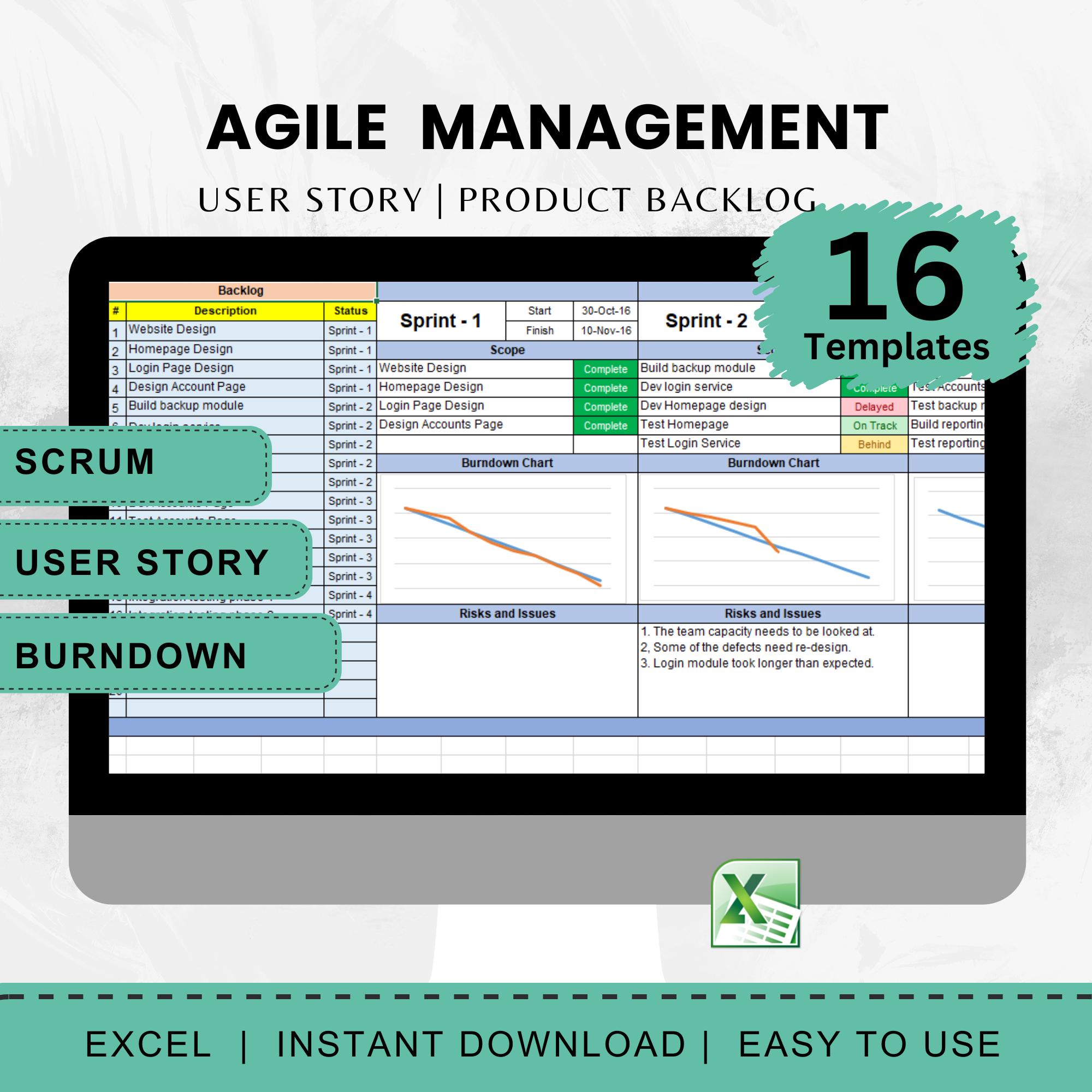 You are about to discover the newly curated Agile Project Management templates. Your new Agile template including user story, burndown chart, scrum and product backlog that will save you time, provide confidence, and lead you to successful projects.